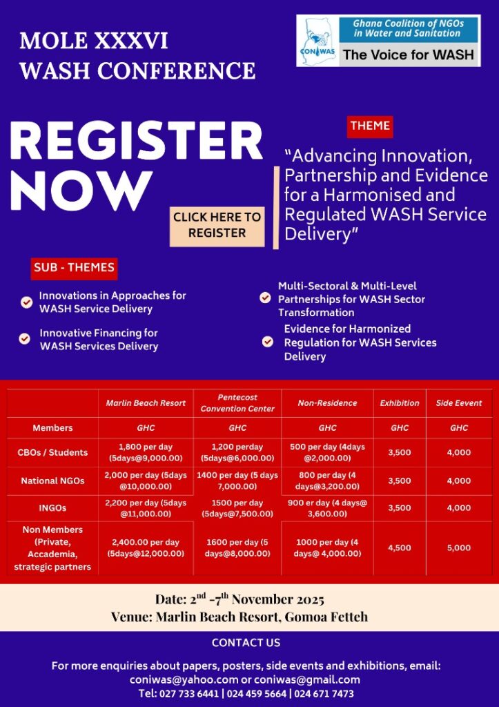 Name: Ghana Coalition of NGOs in Water and Sanitation.Acc No: 1050 1808 86016Branch: Ring Road Central, AccraBank: Fidelity Bank